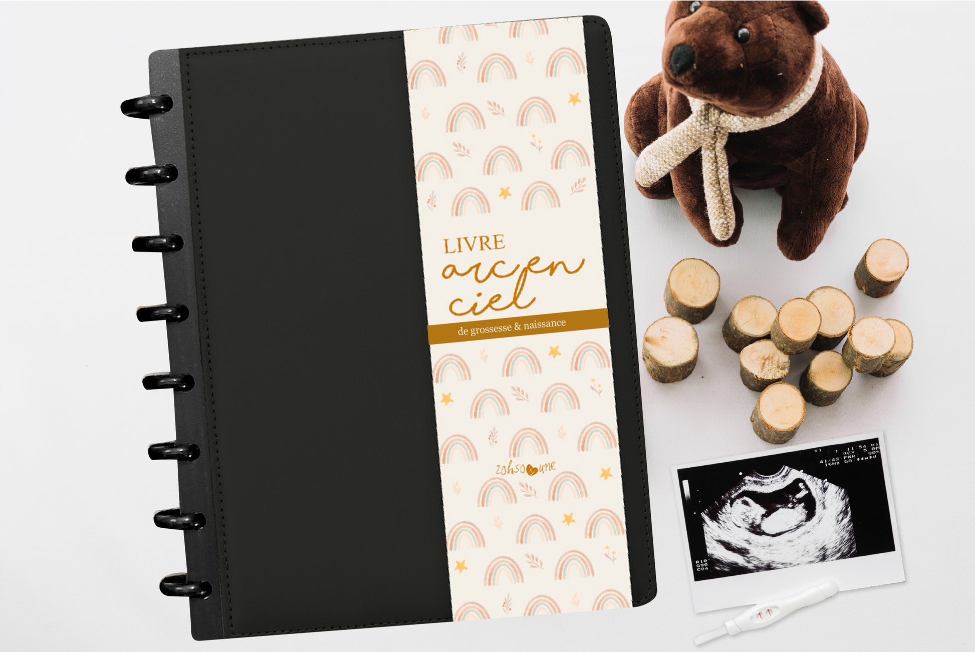 GROSSESSE ET NAISSANCE OURSONS - Couverture en cuir couleurs au choix - 60 pages - De la grossesse aux 1 an de bébé